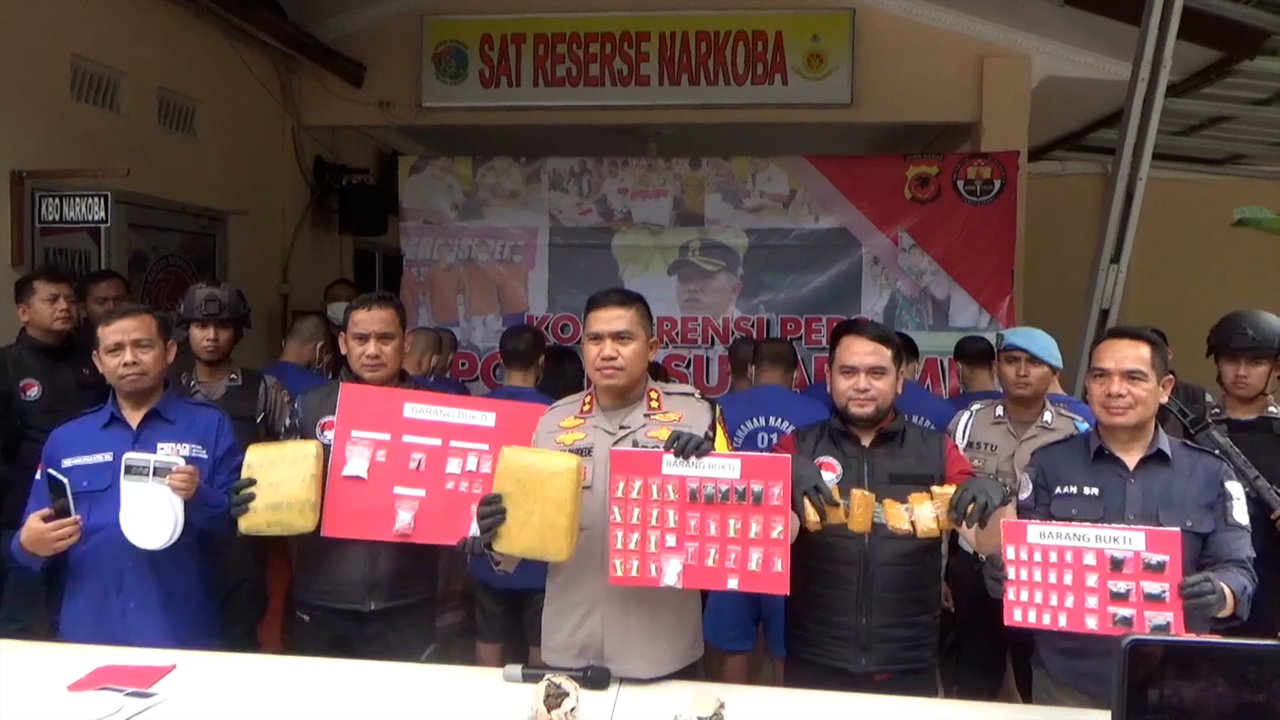 Dalam konferensi pers yang di gelar di depan halaman Satnarkoba Polres Sukabumi pada sabtu 15 Juli 2023, Kapolres Sukabumi AKBP Maruly Pardede didampingi Kasat Reskrim Enjo Sutarjo mengatakan, ratusan narkotika berhasil diamankan dari tangam 14 orang tersangka yang berperan sebagai pengedar terdiri dari 12 orang laki-laki dan 2 orang perempuan.