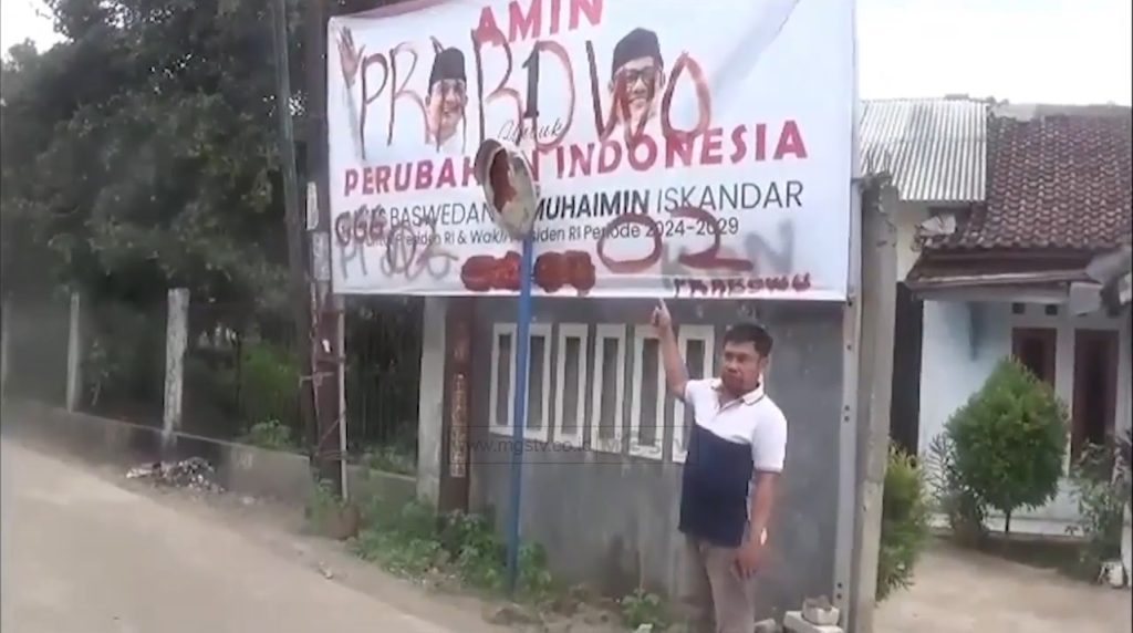 CILEUNGSI, dimasa kampanye baliho paslon nomer urut satu, anies muhaimin, atau amin. kena sasaran aksi…